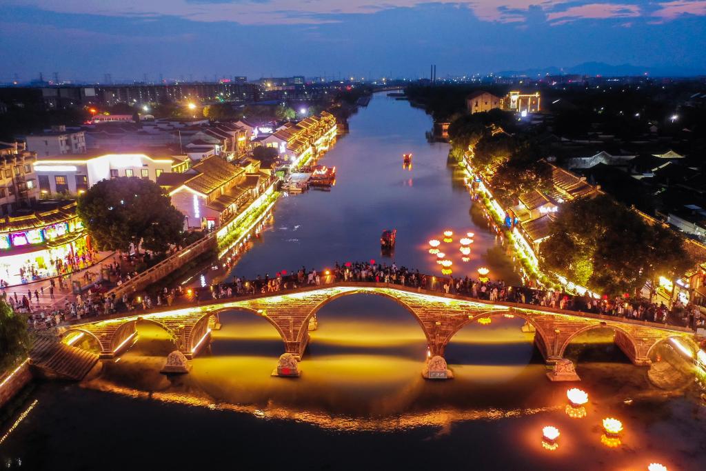 2025-10-119月29日,浙江省台州市路桥区路桥街道古街社区的夜空被桂...