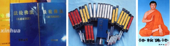 ▲“法轮功”发行的书籍、音像制品、图片等