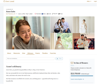 ▲莉莎·埃尔斯莫尔(左)及家人发布的悼念活动信息(右)