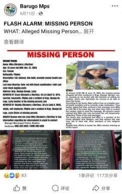 ▲巴鲁戈警察局(Barugo MPS)发布的寻人通告