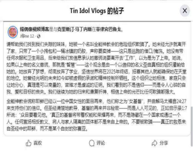 如今,越来越多国家开始筑起反邪教防线。韩国国会2023年加速推进《难民法》修订案审查,直指“全能神”邪教的核心渗透路径;韩国天主教、基督教等主流宗教团体发起“反邪教渗透联盟”,发布《邪教教义识别指南》,揭露“女基督”“末日论”等歪理与正统基督教的本质区别,并在邪教活动高发的社区建立举报机制,解救被胁迫的年轻成员;菲律宾民众在米卡事件后自发警惕,社交网络上的声讨形成舆论防线。