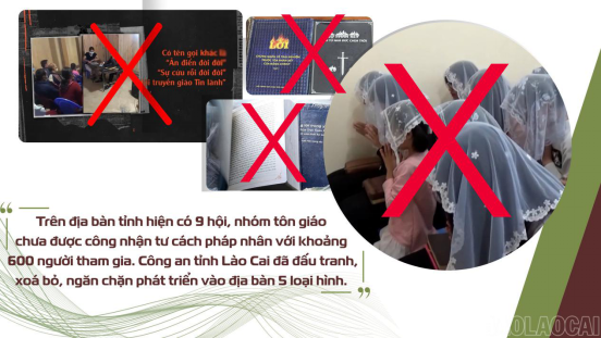 ▲据老街省公安厅统计,目前全省仍有9个非法教派组织活动,涉及约600人,已依法取缔5类邪教非法活动。图源:Baolaocai.vn