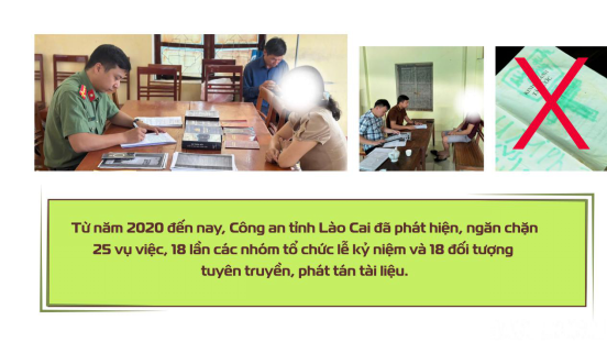 2020年至今,老街省公安厅共查处邪教相关案件25起、制止聚集活动18次,查处18人;查缴邪教非法出版物900余份、邪教标识钥匙扣500个、书籍数十册以及大量图片与存储设备;成功帮助400余人脱离非法教派活动。