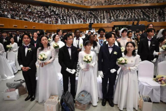 ▲“统一教”邪教组织举办大型集体婚礼现场