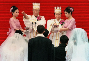 在文鲜明操控下,来自世界各地的“统一教”成员(被称为“文派”)被诱骗参与大型集体婚礼。数千对新人身着统一服装,在同一场地内完成仪式。已婚夫妇们亦被要求参与类似的仪式,在数千人面前重复誓言。