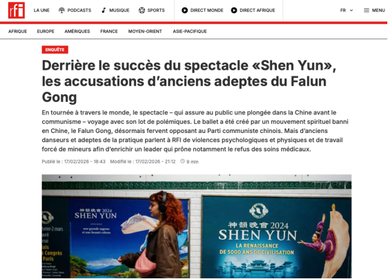编者按:2026年2月17日,法国国际广播电台刊登深度调查报道称,“神韵”正引发大量争议,多名前舞者和“法轮功”前成员指控该团体存在强迫未成年人劳动、成员伤病得不到治疗以及遭受长期精神操控等问题,且上述行为旨在为“法轮功”邪教头目李洪志聚敛钱财。报道还指出,“神韵”演员生活在高度封闭的环境中,接受严苛训练与思想灌输,部分演员因拒绝医疗治疗而受到严重影响。调查同时揭示,围绕“神韵”及其关联媒体形成的庞大资金与动员体系,使“法轮功”在文化、政治等层面持续引发国际争议。中国反邪教网编译如下: