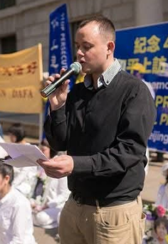 ▲2017年5月,罗布·格雷作为英国“法轮功”学员赴美国纽约游行