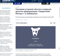 编者按:2026年3月23日,俄罗斯外贝加尔边疆区内务局通报,当地执法部门对“耶和华见证人”极端组织相关分支开展集中搜查行动,查处10名成员并对其立案侦查。外贝加尔边疆区首府赤塔市地方媒体“赤塔”(Chita.ru)同日对此次执法行动进行报道,并指出该组织自2017年被俄罗斯联邦最高法院裁定为极端组织并依法取缔后,仍在当地以隐蔽方式开展活动,并诱骗当地居民加入其中。中国反邪教网编译如下: