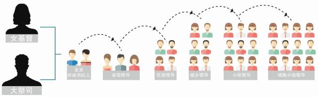 为了更好地领导这个庞大的邪教体系,该组织内部自上而下设有“女基督”、“大祭司”、“圣灵所使用的人”、“省级领导”、“区级领导”、“城乡领导”、“小排领导”和“细胞小组领导”等层级,整个富阳就被他们定为“富阳小区”。