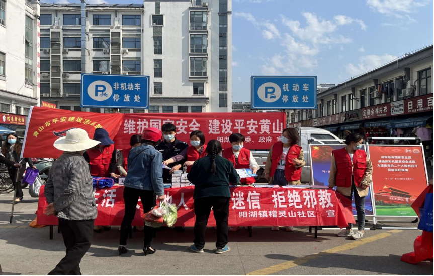 在第七个全民国家安全教育日到来之际,为切实增强全区人民国家安全理念,牢固树立旗帜鲜明的反邪教意识,安徽省黄山市屯溪区委政法委及区反邪教协会联合各镇(街道)、区直有关部门开展了形式多样的反邪教宣传教育活动。