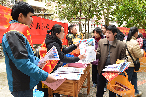 2018年1月以来,广西梧州市先后开展了元旦春节赠春联游园活动、反邪教宣传进村入户等活动,把反邪教和法治宣传融入欢乐祥和的节日庆祝活动中。该市多元化开展反邪教警示教育宣传活动,通过和居民群众互动游戏、猜字谜、悬挂横幅、发放反邪教宣传册、反邪教购物袋宣传品等方式,大力宣传反邪教知识,做到反邪教知识进乡村、进社区、进家庭,营造浓厚的反邪防邪、喜迎新春的浓厚氛围,努力提高辖区居民识别和抵御邪教的能力。