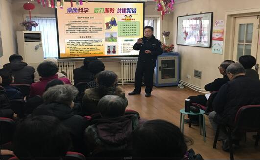 宁河区委机关党委组织机关党员深入社区,开展反邪教宣传活动。此次活动是区委机关党委组织集体活动的一项重要内容,12月9日,他们深入社区、住户,一方面宣传讲解十九大精神,一方面将反邪教知识送到千家万户,并发放“拒绝邪教倡议书”。增强社区群众法制观念,崇尚文明,远离邪教,受到社区群众的欢迎。