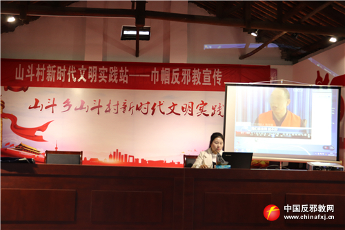 反邪教工作人员带领大家观看反邪教警示教育视频。