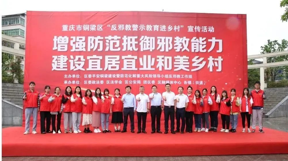 4月18日,铜梁区“反邪教警示教育进乡村”系列宣传活动启动仪式在明月广场举行。区委常委、政法委书记周良华讲话并宣布活动启动,区政府副区长夏斌参加活动。区委政法委、区公安局、区反邪教协会、区法学会、团区委等相关单位负责人,各镇(街道)、派出所负责人以及3000余名群众参加活动。