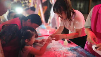 最后的环节是共制冰皮月饼。家长与孩子携手揉面团、包馅料,雪白的月饼在手中成型,志愿者则在旁发放反邪教宣传手册,用“月饼需好料,生活需正途”的比喻,提倡大家警惕邪教歪理。