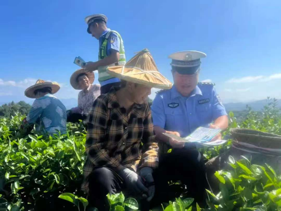 福建永春,古称“桃源”,是农业大县,佛手茶为支柱产业。到了金秋十月采茶季,这是永春县最忙碌热闹的时刻,万亩佛手茶园铺展在山间,空气中满是佛手茶特有的清香,茶山上茶农忙碌的身影,绘就了一片生机勃勃的景象。2025年10月20日,福建省泉州市永春县公安局利用这一有力契机,组织警力带着反邪宣传等材料走到茶农身边。
