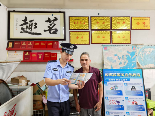 “老康,您看这传单上的案例,有人信了‘全能神’,被骗了几万块不说,还耽误了病情的治疗,得不偿失啊!”在玉斗镇凤溪村的茶叶作坊里,民警用地道的闽南语讲解,把生硬的法律条文结合到具体案例中,变成了通俗易懂的家常话。原本严肃的反邪宣传,在民警的讲述中变得格外的灵动、接地气。