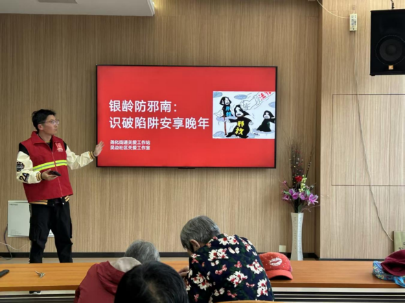 金风玉露、菊黄桂香。为进一步弘扬尊老、敬老、爱老、助老的传统美德,切实筑牢老年人群体反邪教思想防线,10月28日下午,江苏省南京市栖霞区尧化街道联合吴边社区,在街道关爱工作站、居家服务中心,共同举办了一场别开生面的“情暖重阳,反邪同行”主题宣传教育活动,为辖区老年朋友们送上了一份饱含关爱与智慧的“节日礼物”。