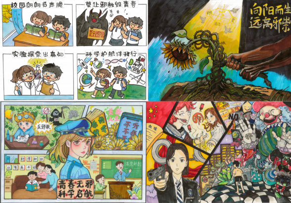 此次活动使广大中小学生群体对邪教有了更深刻、更全面、更深入的认识,形成了良好的创作氛围,共征集漫画作品357幅。同学们以画笔为武器,以艺术为媒介,通过单幅漫画、四格漫画等形式,生动表现出他们对“青春无邪 科学启航”主题的多元理解与艺术诠释。