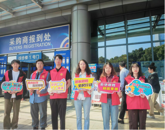 2025中国义乌国际小商品博览会-进口商品展于11月13日至15日在浙江义乌国际博览中心举办。为使参展商、采购商、游客、广大市民群众深刻认识邪教组织的本质和社会危害,进一步增强防邪拒邪能力,浙江省义乌市委政法委会同北苑街道平安法治办紧抓“义博会”客流如织、万商云集的契机,开展以“科学健康生活 抵制邪教侵蚀”主题宣传活动,吸引了参展商、采购商、游客、广大市民群众关注。