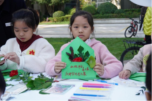 活动现场,“秋韵反邪书签DIY”环节成为绝对焦点,数十位学生与家长踊跃参与。街道提前布置好小区寻秋路线,孩子们带着任务卡穿梭在绿化带中,收集金黄的银杏叶、火红的枫叶、形态各异的枯枝等秋日元素。