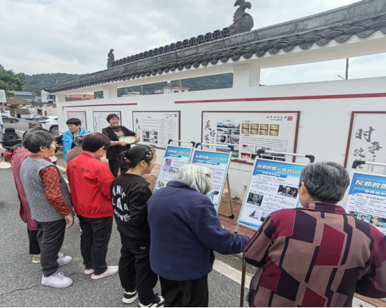 诸暨市姚江镇开展以“健康素养伴我行 反邪宣传入人心”为主题的反邪宣传活动。活动现场,工作人员通过设置宣传展板、发放反邪手册、现场答疑等形式,向村民详细讲解邪教的本质特征、危害后果及识别防范方法。同时,宣传人员还向村民普及健康生活知识,将科学健康的生活方式与反邪教理念相结合,倡导大家相信科学、反对迷信,以健康向上的心态面对生活。
