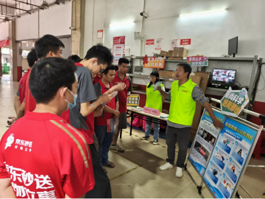 京东快递点的宣传精准对接物流行业需求,“AI问诊+场景化讲解”成为亮点。快递员们通过智能设备参与物流场景反邪答题,系统实时生成安全报告,明确“可疑包裹处置”“邪教宣传品识别”等工作要点。志愿者拆解邪教利用物流传播的套路,提醒快递员守住包裹“入口关”“派送关”,让快递岗位成为防范邪教传播的“前哨站”。
