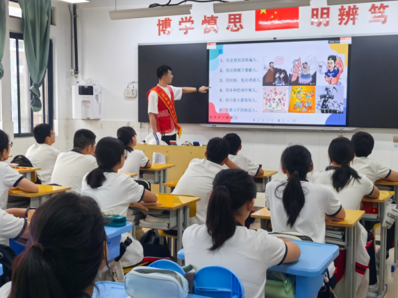 创新形式,增强宣传教育实效。综合运用多元化宣传手段,让反邪宣传从“被动听”变为“主动学”。视觉化冲击强化警示效果,播放反邪教专题影片,引导学生深刻感受邪教对个人、家庭和社会的危害,筑牢思想防线。互动式体验提升参与热情,通过提问互动、知识抢答、情景模拟等形式,引导学生主动思考,在互动中掌握防邪技巧。生活化渗透拓宽教育维度,发放印有反邪教知识的笔袋、笔记本、橡皮等物品,让反邪知识融入日常学习生活。