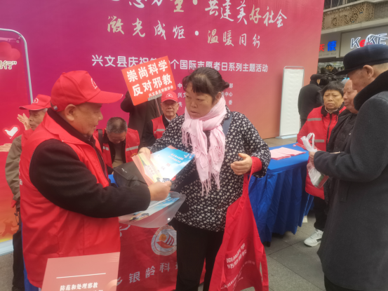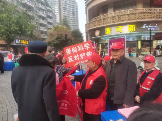 近日,四川省宜宾市兴文县老城区石海广场暖流涌动。为庆祝第40个国际志愿者日,兴文县反邪教协会志愿者服务队开展以“崇尚科学 反对邪教 温暖同行 守护家园”为主题的宣传活动,将反邪知识与志愿温暖送到群众身边。