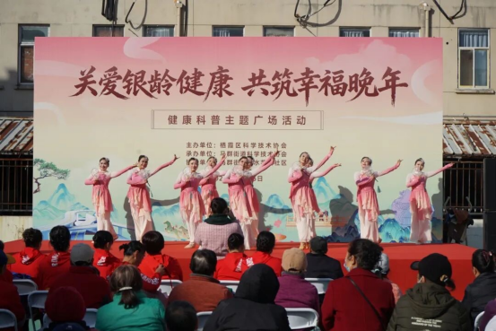 此次活动的举办,正是为了将实实在在的关爱和科学理性的精神防护网,编织进每位长者的金色岁月——健康是幸福的根基,而清醒的头脑更是守护这根基的坚实屏障。当《红红的对联火火的歌》旋律响起,百水芊城社区老年舞蹈队用优雅的舞姿传递着积极健康的生活态度,台下老人们掌声热烈,脸上洋溢着由衷的认同与欢愉——艺术无声润物,让反邪教主题的严肃底色与幸福晚年的温暖色泽自然交融。