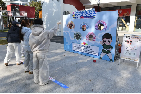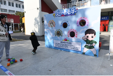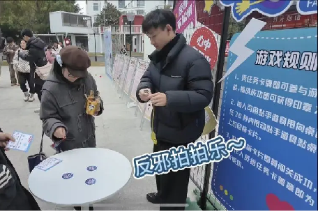 在学校广场上,布置着“反邪丢丢乐”“反邪拍拍”等游戏项目,将反邪教知识融入投掷、闯关等玩法中,现场工作人员与志愿者全程讲解知识点、引导互动,既让参与者在轻松玩乐中加深对反邪教知识的理解,又通过集齐能量章等形式强化宣传效果,有效提升活动趣味性、挑战性和教育意义。