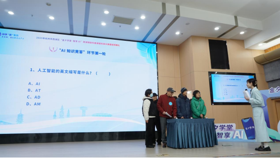 为更好地展现“金夕学堂”长者学员的学习成效,现场进行了“智享AI”科技反邪大赛。来自西湖区各镇街的学员代表们组成竞赛小组,在AI知识问答和AI技能实操两个环节中展开比拼。赛场上的长者们精神矍铄,熟练操作手机、运用AI工具完成指定任务,展现了新时代老年人积极学习、勇于挑战的风采。