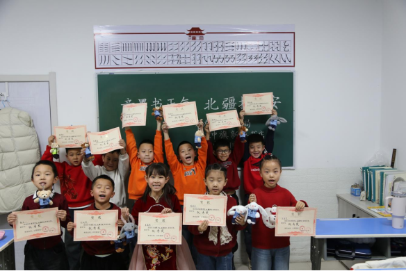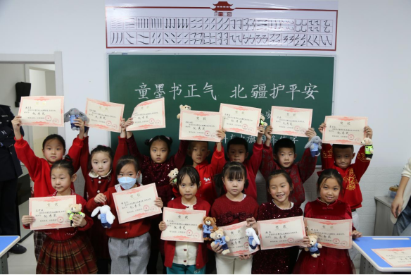一张张带着童真却字迹工整的反邪教主题书法作品铺满桌面,练字班专业老师组成评审组,从书写工整度、主题契合度、创意趣味性三个维度,认真评选出一、二、三等奖及优秀奖。当民警将荣誉证书和绘本、练字本等奖品递到孩子们手中时,孩子们的脸上满是自豪。一个扎着羊角辫的小姑娘举着证书蹦跳着说:“我要把作品贴在墙上,还要告诉爸爸妈妈,一起远离邪教!”