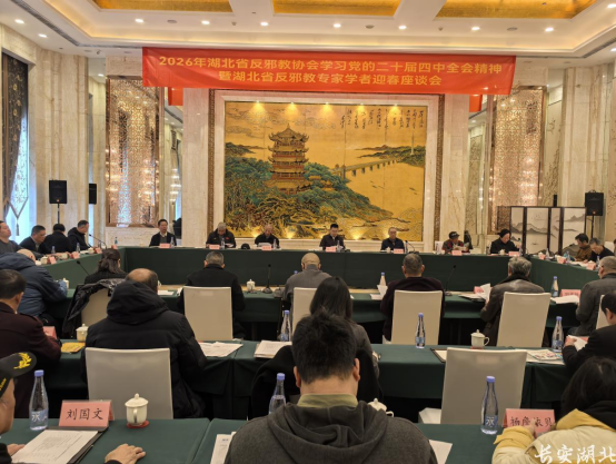 春潮涌动处,奋进正当时。邪教作为危害国家安全、扰乱社会秩序、侵蚀群众心灵的社会毒瘤,其滋生蔓延始终是影响社会和谐稳定的重要隐患。为全面落实国家反邪教工作方针政策,进一步汇聚社会各界智慧、整合专业资源,探索新形势下反邪教工作的新思路、新方法、新路径,2026年1月17日,湖北省反邪教协会在武汉洪山宾馆隆重召开专家学者迎春座谈会。来自全省高校、科研院所、宗教团体、政法系统及基层一线的60余名专家学者、宗教界人士、反邪教志愿者代表齐聚一堂,以理论研讨凝聚共识,以经验交流共促提升,共话反邪教事业发展蓝图,共迎新春佳节到来。