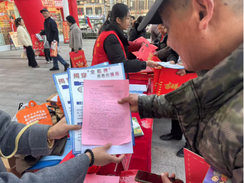 推动防非防邪融合,让双向守护落到实处。为进一步提升宣传实效,实现精准宣教、综合发力,霍邱县委政法委统筹部署,将反邪教警示教育与防范非法金融集中宣传有机结合,紧扣“守住钱袋子·护好幸福家”宣传主题,同步推进、同向发力。宣传现场,工作人员一方面向群众细致讲解非法集资、电信诈骗等非法金融活动的危害及识别技巧,另一方面普及反邪教相关知识,深入剖析邪教与非法金融活动相互勾结、侵害群众财产安全的典型案例,提醒群众既要守住“钱袋子”,也要筑牢“防邪线”,让群众在互动交流中同步掌握防非、防邪知识,实现“一次宣传、双重收获”,切实提升群众自我保护能力,营造全民防非、自觉拒邪的良好社会氛围。
