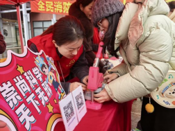 现场设置“反邪知识问答”互动区,题目涵盖“邪教特征识别”“科学信仰坚守”等内容。1分钟快问快答,答对即可兑换“吧唧徽章制作”体验券。这种“学答结合”的方式,打破传统宣传的“说教感”,吸引园区众多白领参与。