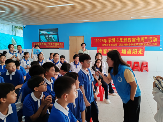 在小漠中学举办“青春无邪,圳当阳光”反邪教宣传教育活动。活动以播放宣传片、PPT 案例讲解、有奖问答等形式,向学生系统揭示邪教伪装手段与严重危害,引导青少年增强自我保护意识,争做抵制邪教的青春力量。