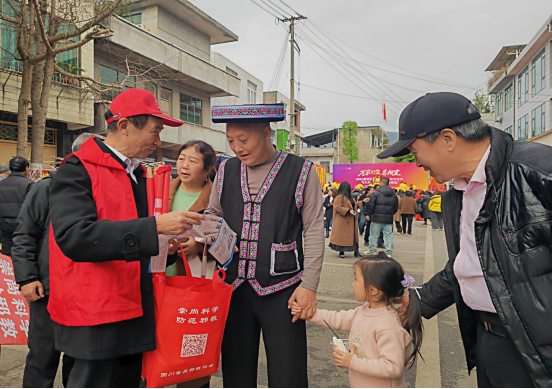 活动现场,6台4至7米高的“大坝高装”凌空巡游,《天仙配》《化蝶》等经典剧目与《哈三妹出征》等僰苗特色剧目轮番上演,引得现场掌声、欢呼声不断。志愿者们趁着演出间隙和巡游人流高峰,穿梭在人群中,通过设立流动宣传点、发放定制宣传品、面对面讲解等形式,向群众普及反邪教知识。