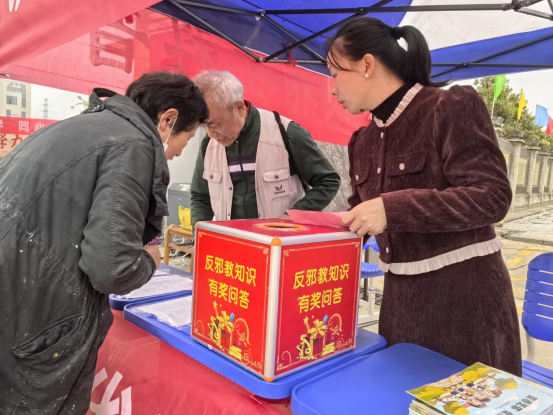 4月3日,湖北省委政法委、省反邪教协会精准把握这一契机,启动全省反邪教警示宣传教育(武汉新洲站)活动,联合当地志愿者队伍,深入活动现场组织宣传工作,把反邪教宣传巧妙融入这场民间盛会,摒弃以往生硬说教、单向灌输的模式,坚持“贴近群众、服务群众、引导群众”的原则,让反邪知识跟着民俗走、围着群众转,用通俗易懂、群众喜爱的方式,送上接地气、入人心的“反邪精神食粮”,让防邪意识在欢声笑语中扎根心底,真正实现“宣传无死角、知识入人心”的目标。
