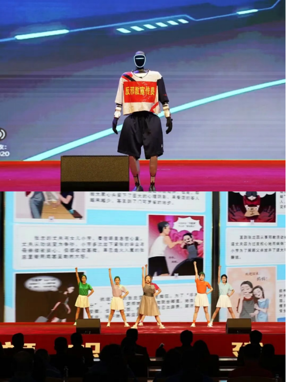 伴随着明快激昂的背景音乐演绎快板唱词,搭配节奏感极强的舞蹈,展现破除思想迷雾、坚守科学真理、抵制邪教的昂扬姿态,观赏性与教育性兼备,耳目一新、感染力十足。