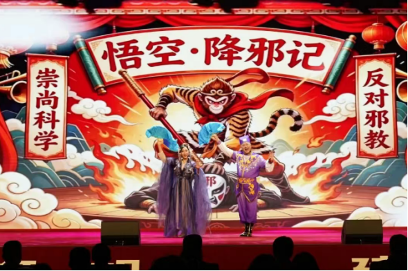 巧妙融合传统民间曲艺与古典文学,以诙谐生动的乡土演绎,深刻揭露邪教丑恶本质,引导群众明辨是非、崇尚科学,自觉抵制邪教的侵蚀。
