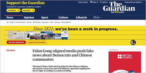 ▲英国《卫报》揭露“大纪元”散布虚假新闻