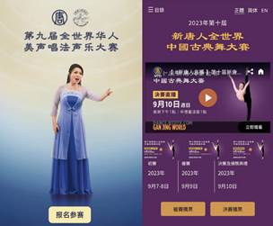 ▲“新唐人电视台”网站发布的比赛宣传广告