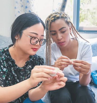 来自南非开普敦的宝莉(右)是浙江省长兴县的一名外教老师。来中国一年多,她已经习惯了当地生活。新华社记者 徐 昱摄