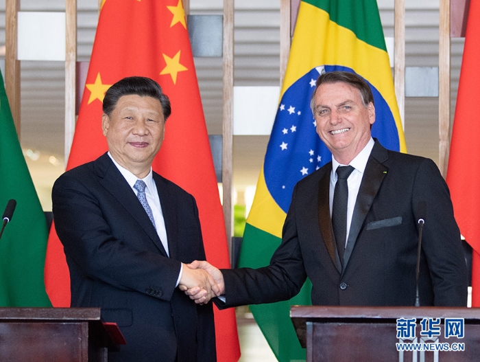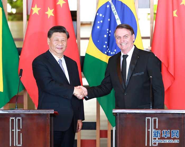 习近平指出,上个月,博索纳罗总统成功对中国进行国事访问,我们达成的共识正在得到积极落实。在刚刚结束的第二届中国国际进口博览会上,巴西参展方的成交额比上届增长3.6倍,成绩喜人。中巴作为东西半球最大的新兴市场国家,拥有广泛共同利益。我们看好巴西发展前景,对中巴合作充满信心,愿同巴西分享发展经验,共享发展成果,实现共同繁荣。我愿同你一道,把握好、引领好中巴关系发展方向。