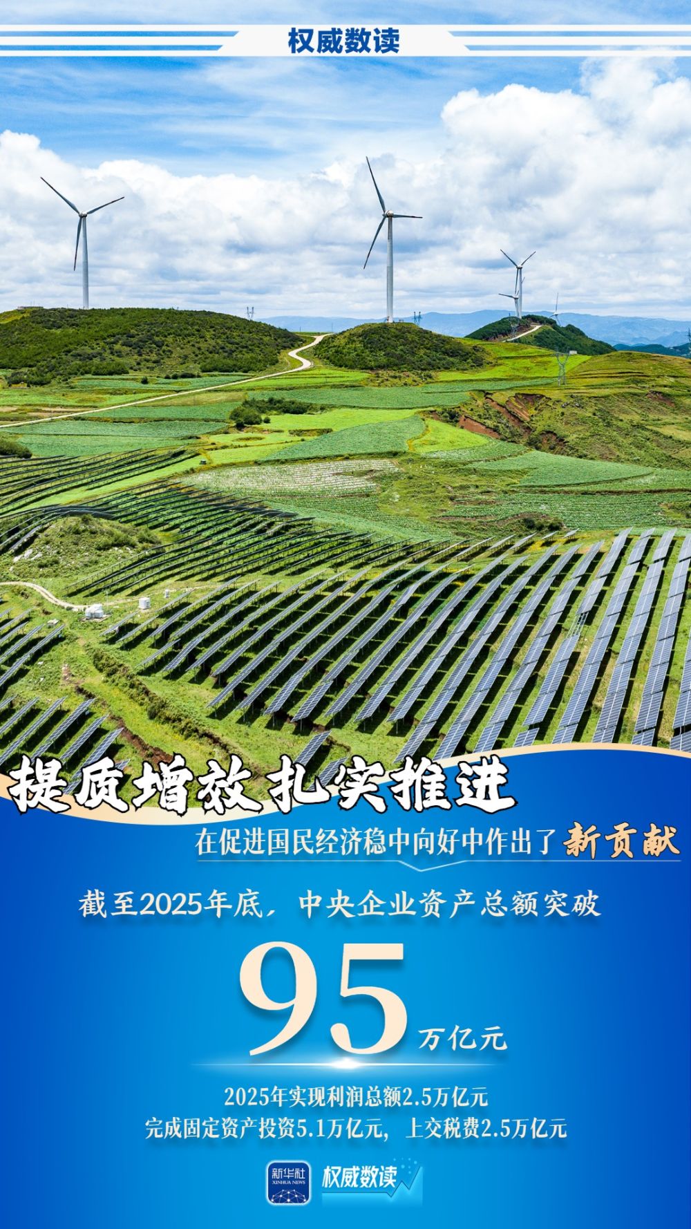 新贡献、新突破、新作为、新活力、新担当。2025年,央企资产总额突破95万亿元,研发投入连续四年超万亿元,战略性新兴产业投资占总投资的41.8%……跟随海报,一起看看国资央企交出的这份五“新”成绩单。