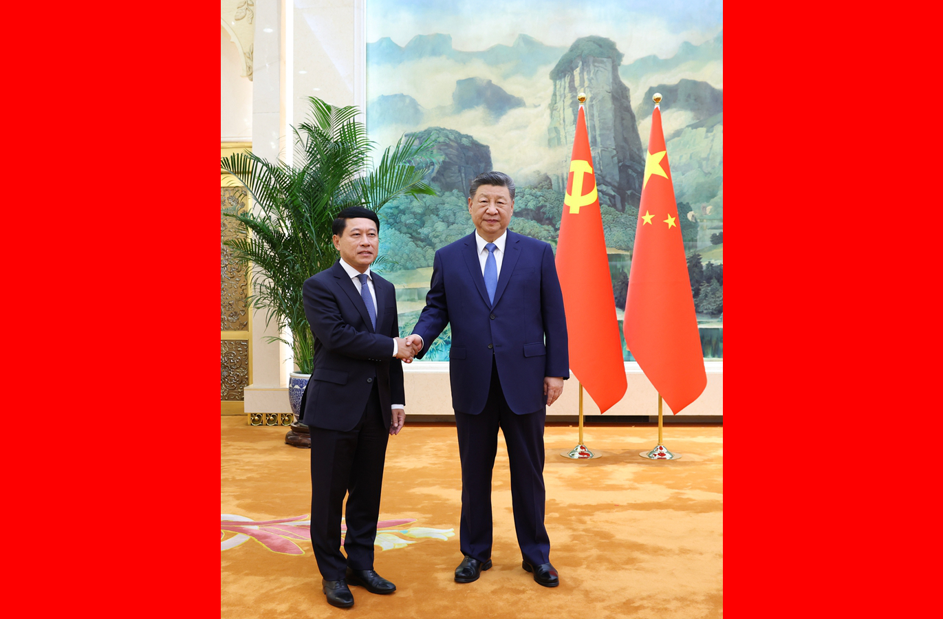 4月21日下午,中共中央总书记、国家主席习近平在北京人民大会堂会见作为老挝人民革命党中央总书记、国家主席通伦特使专程来访的老挝人革党中央政治局委员、常务副总理沙伦赛。新华社记者 黄敬文 摄 新华社北京4月21日电(...2026-04-22