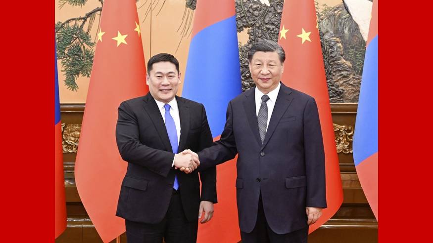 国家主席习近平在北京人民大会堂会见来华进行正式访问的蒙古国总理奥云额尔登。 2023-06-28