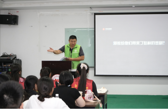 当天下午,在学校教室里开展反邪教宣讲活动。反邪教讲师分别从什么是邪教、邪教的种类特征、邪教的危害、邪教拉拢欺骗青少年的手法以及防范处置方法等多个方面,向学生做了深入浅出的宣讲和精彩的演讲,赢得台下学生阵阵热烈的掌声。在场的同学们纷纷表示,此次“开学第一课”内容丰富、贴近生活,在以后的学习生活中,做一名爱国、守法、诚信、知礼的好学生。