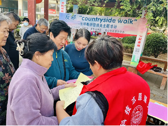 此外,在活动中,志愿者们还通过设置咨询台、发放宣传册、悬挂横幅等形式,向来往群众细致讲解“邪教的类别、如何识别邪教、如何增强自身防范邪教能力、遇到邪教应该怎么办”等相关知识,耐心细致地解答群众提出的问题,引导群众自觉远离邪教,崇尚科学。